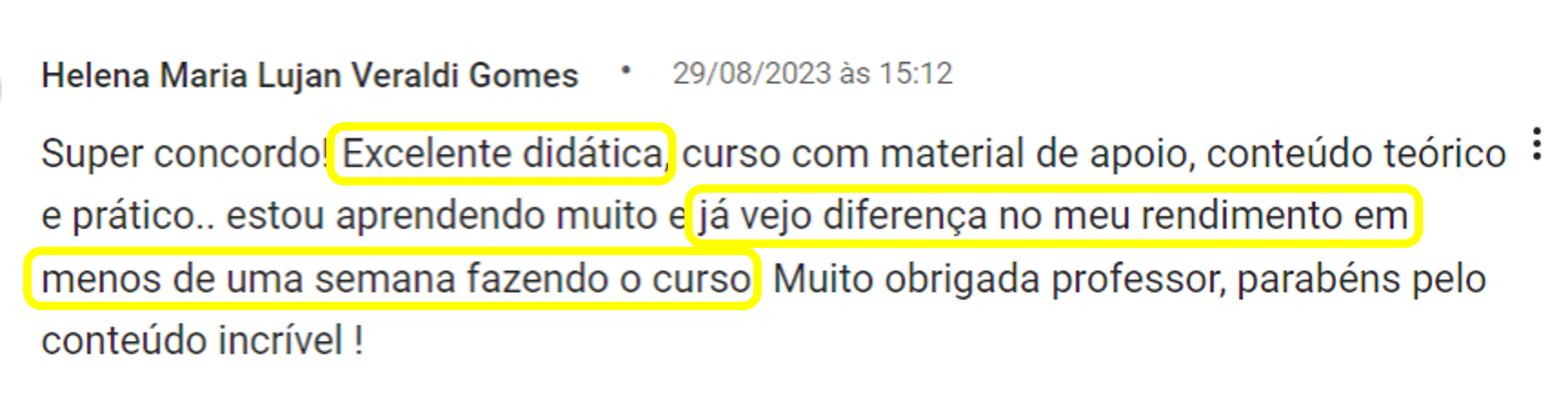 Os alunos relatam que em 1 SEMANA já tem resultados incríveis pela didática do curso